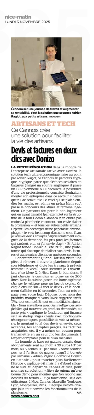Costumava perder horas a escrever orçamentos e a perseguir pagamentos. Agora com o Donizo, basta falar para o meu telefone e em menos de um minuto tenho uma proposta profissional em PDF pronta a enviar. Vejo instantaneamente quem pagou e quem não pagou. Voltei a focar no trabalho, não na papelada.